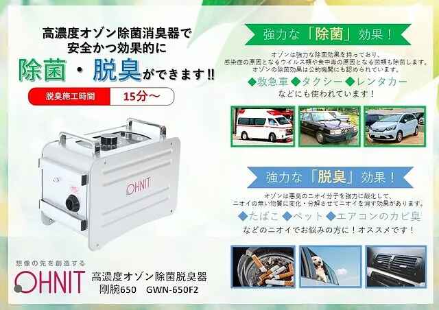 車内の隅々まで行き渡るオゾンで、脱臭するだけでなく、ウィルスや菌の除去も同時に行えます。